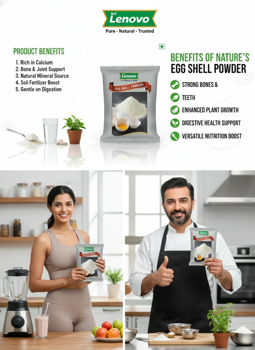 Sri Lenovo Egg Shell Powder stands out for its natural appearance, clean aroma, and fine texture. Carefully processed to maintain original characteristics, it delivers dependable quality and authentic taste suitable for modern kitchens and traditional practices. How to Use: Sri Lenovo Egg Shell Powder can be used in daily cooking, beverages, health recipes, and traditional preparations. It mixes easily and enhances flavour, nutrition, or functionality depending on use. Why Choose Sri Lenovo: At Sri Lenovo, we focus on purity, hygiene, and trust. Our products are made with care using quality ingredients and clean processing standards, ensuring safety, consistency, and satisfaction in every pack.