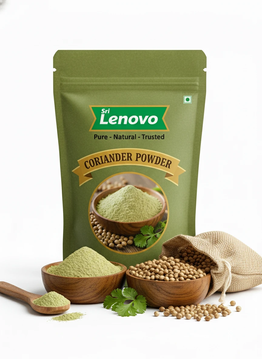 Sri Lenovo Coriander Powder stands out for its natural appearance, clean aroma, and fine texture. Carefully processed to maintain original characteristics, it delivers dependable quality and authentic taste suitable for modern kitchens and traditional practices. How to Use: Sri Lenovo Coriander Powder can be used in daily cooking, beverages, health recipes, and traditional preparations. It mixes easily and enhances flavour, nutrition, or functionality depending on use. Why Choose Sri Lenovo: At Sri Lenovo, we focus on purity, hygiene, and trust. Our products are made with care using quality ingredients and clean processing standards, ensuring safety, consistency, and satisfaction in every pack.