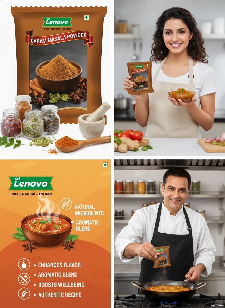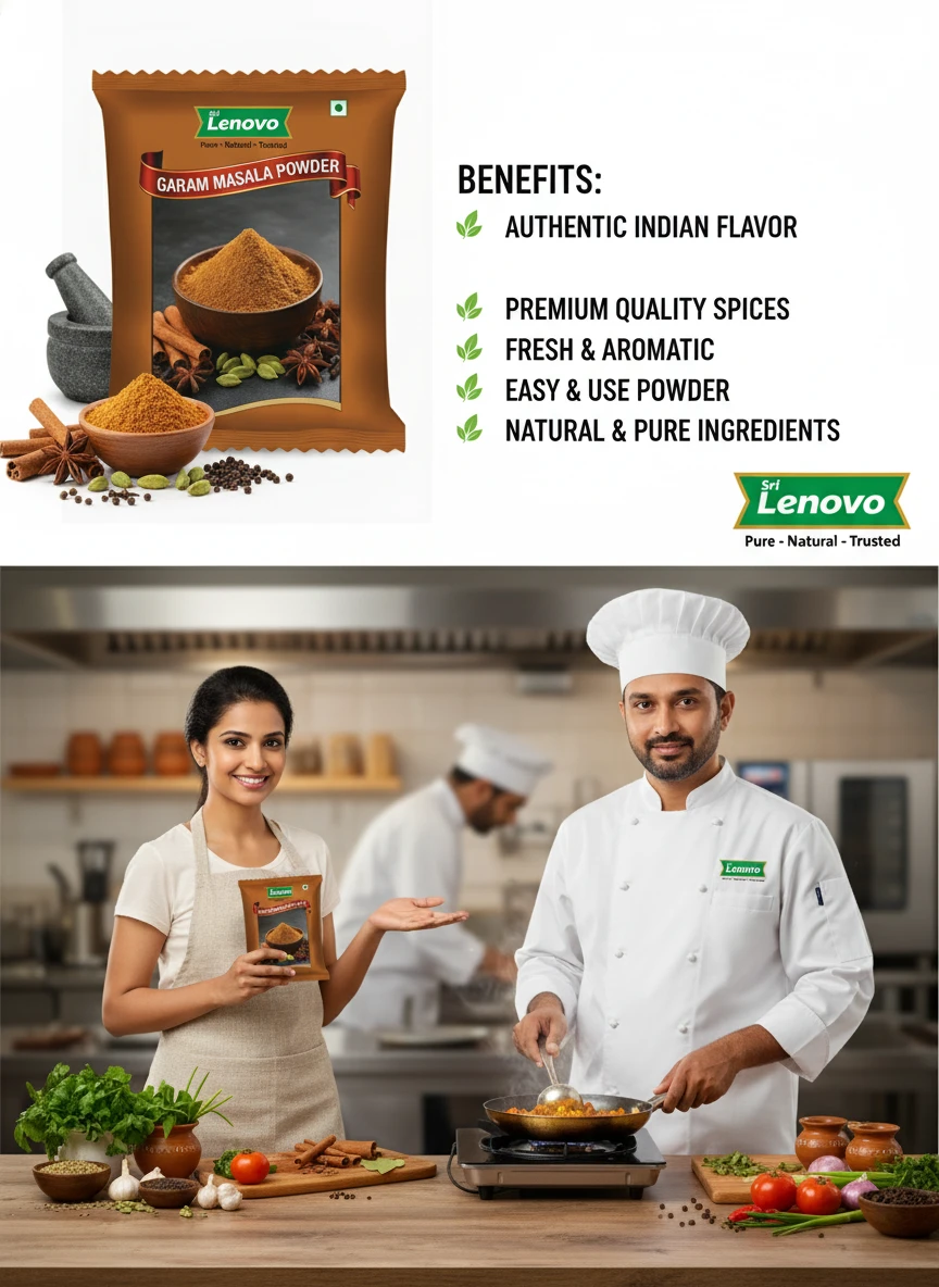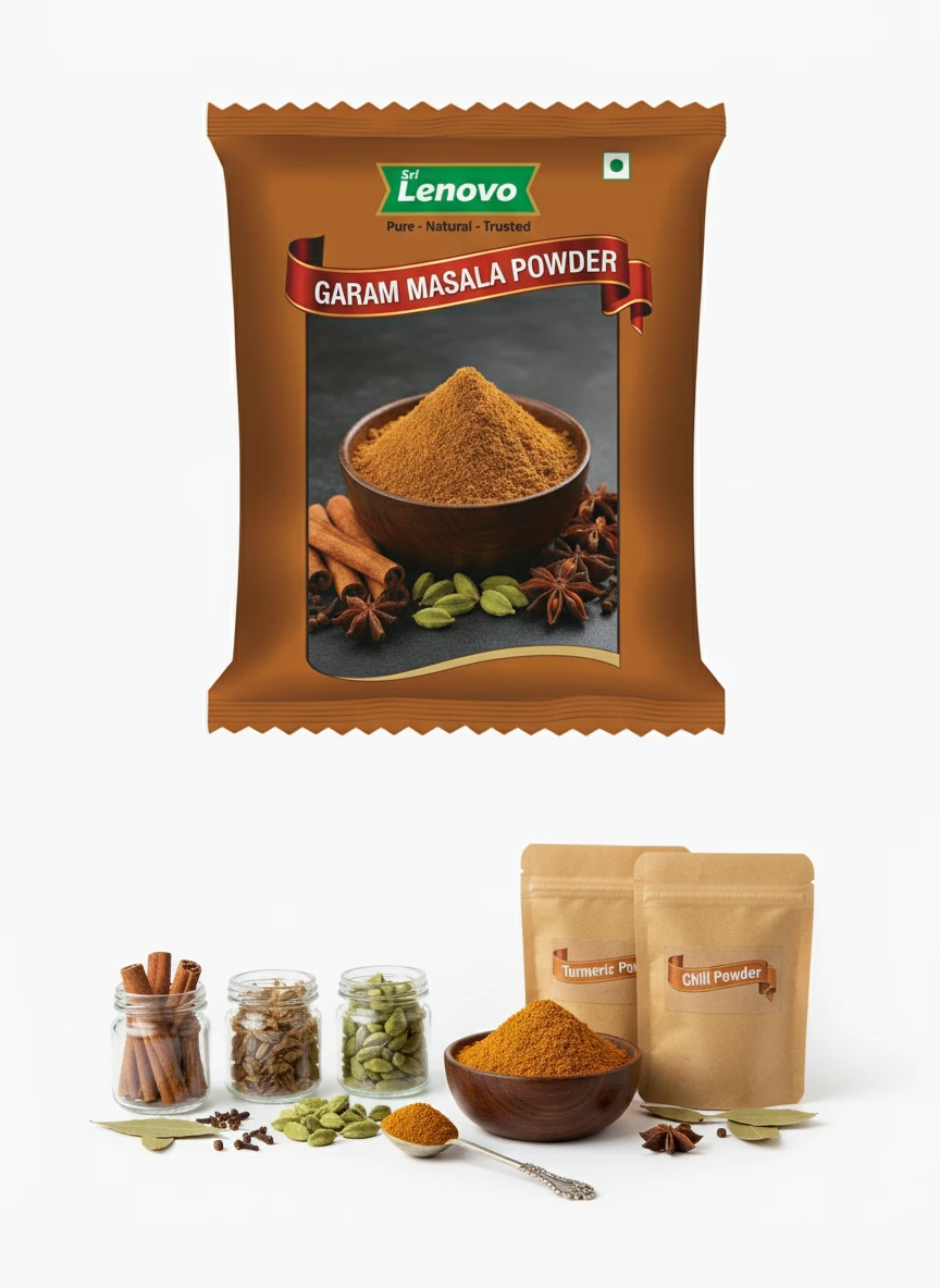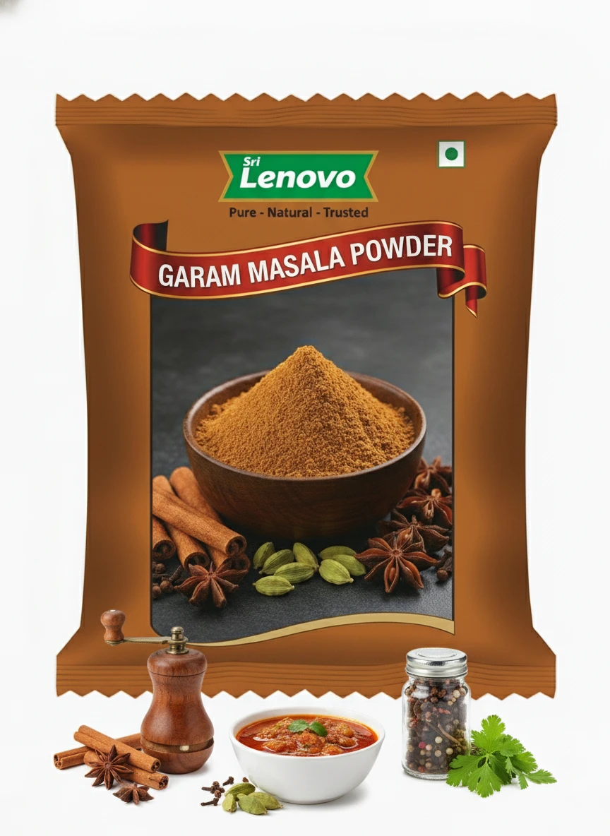Sri Lenovo Garam Masala Powder stands out for its natural appearance, clean aroma, and fine texture. Carefully processed to maintain original characteristics, it delivers dependable quality and authentic taste suitable for modern kitchens and traditional practices. How to Use: Sri Lenovo Garam Masala Powder can be used in daily cooking, beverages, health recipes, and traditional preparations. It mixes easily and enhances flavour, nutrition, or functionality depending on use. Why Choose Sri Lenovo: At Sri Lenovo, we focus on purity, hygiene, and trust. Our products are made with care using quality ingredients and clean processing standards, ensuring safety, consistency, and satisfaction in every pack.