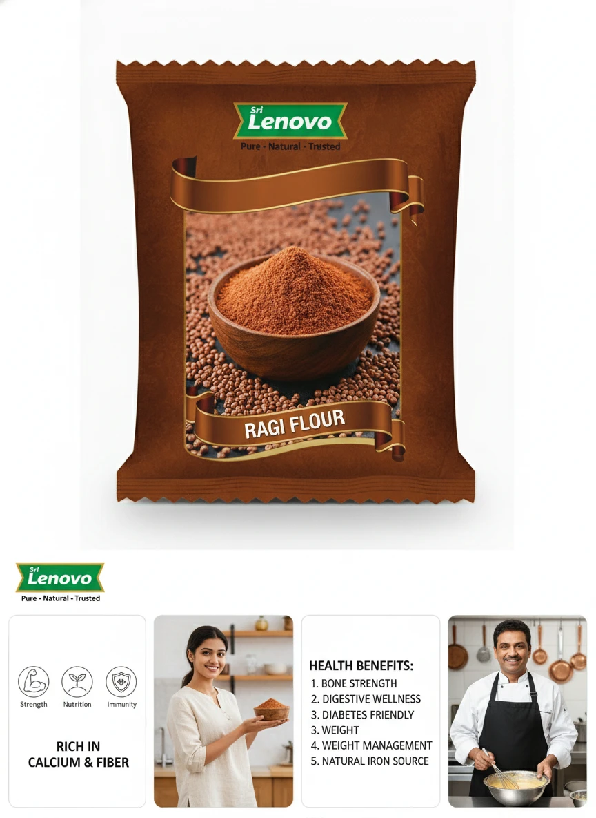 Sri Lenovo Ragi Powder stands out for its natural appearance, clean aroma, and fine texture. Carefully processed to maintain original characteristics, it delivers dependable quality and authentic taste suitable for modern kitchens and traditional practices. How to Use: Sri Lenovo Ragi Powder can be used in daily cooking, beverages, health recipes, and traditional preparations. It mixes easily and enhances flavour, nutrition, or functionality depending on use. Why Choose Sri Lenovo: At Sri Lenovo, we focus on purity, hygiene, and trust. Our products are made with care using quality ingredients and clean processing standards, ensuring safety, consistency, and satisfaction in every pack.