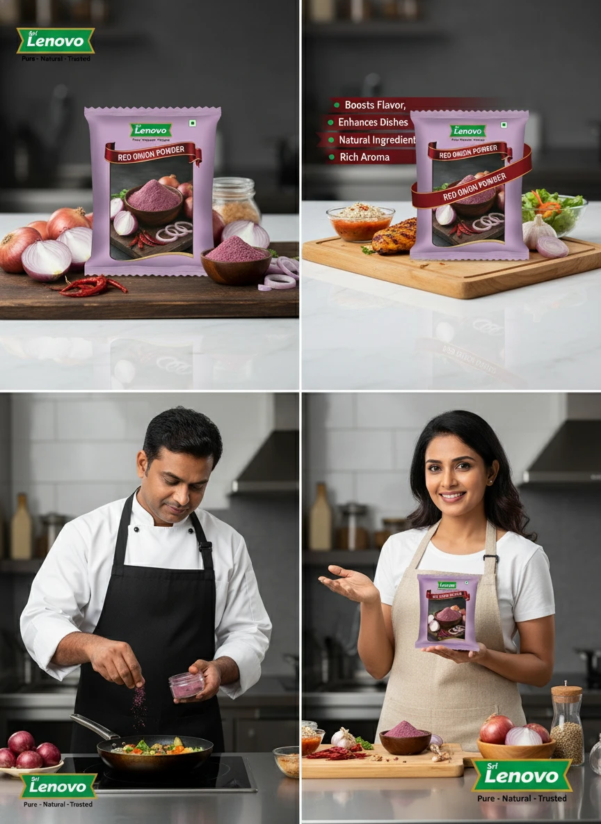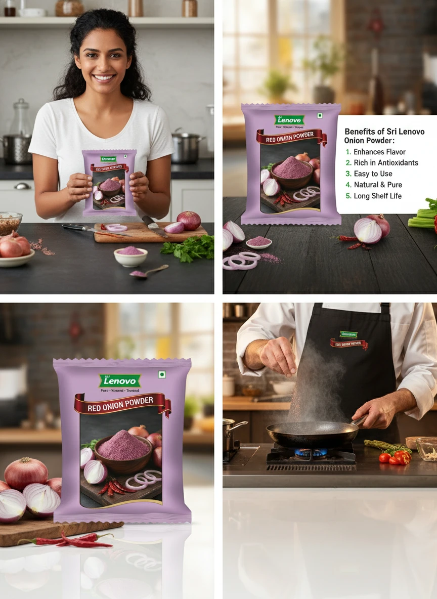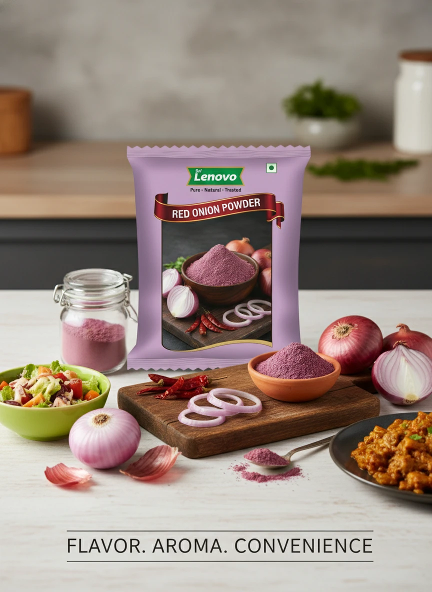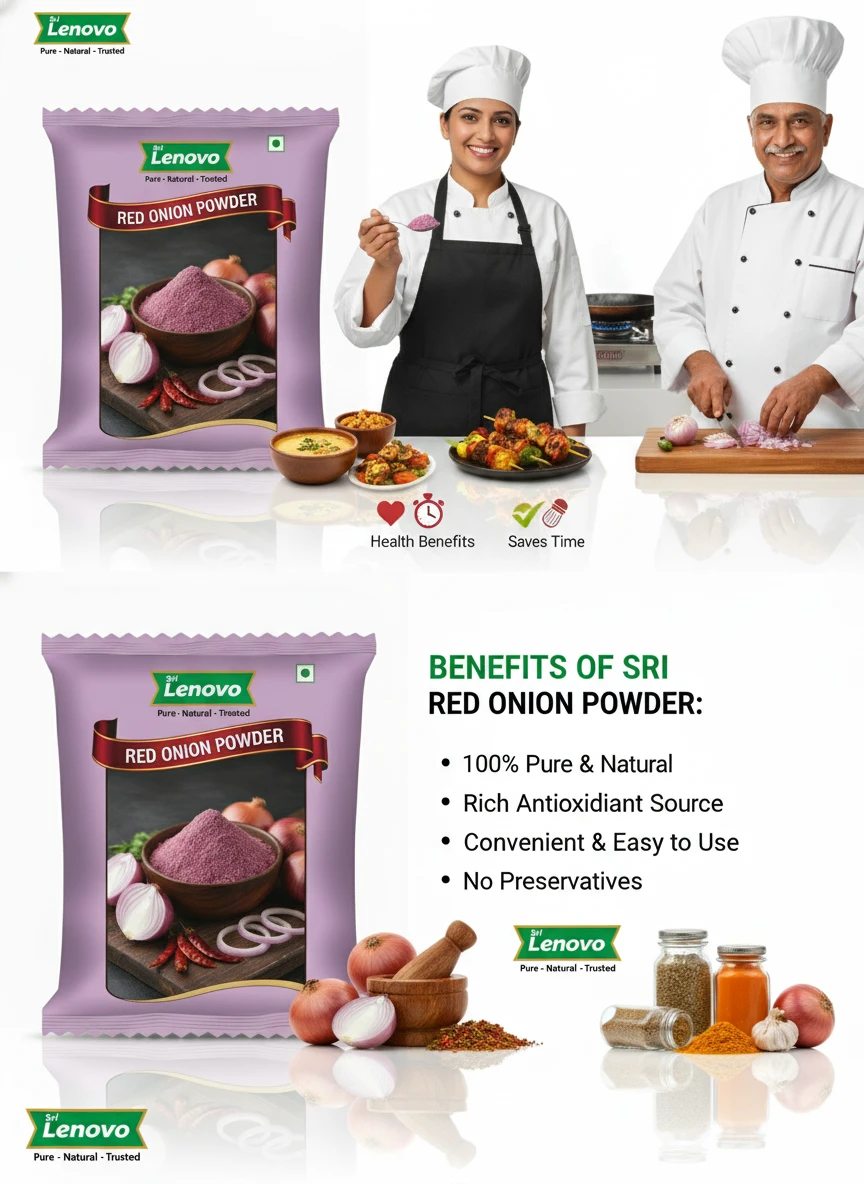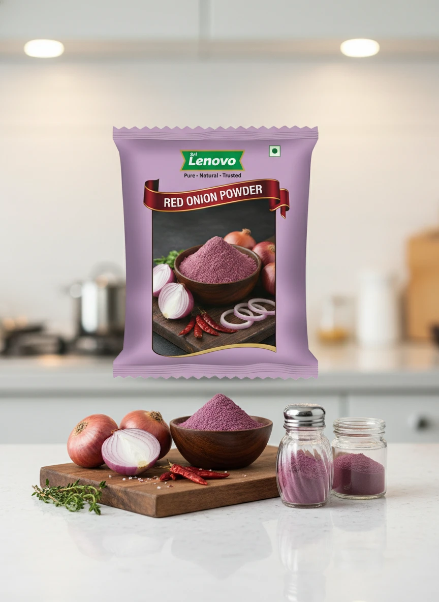 Sri Lenovo Red Onion Powder stands out for its natural appearance, clean aroma, and fine texture. Carefully processed to maintain original characteristics, it delivers dependable quality and authentic taste suitable for modern kitchens and traditional practices. How to Use: Sri Lenovo Red Onion Powder can be used in daily cooking, beverages, health recipes, and traditional preparations. It mixes easily and enhances flavour, nutrition, or functionality depending on use. Why Choose Sri Lenovo: At Sri Lenovo, we focus on purity, hygiene, and trust. Our products are made with care using quality ingredients and clean processing standards, ensuring safety, consistency, and satisfaction in every pack.